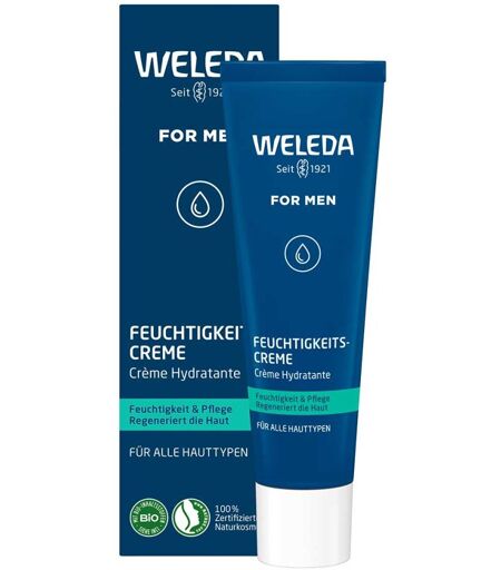 Anwendungsgebiet von Weleda for Men FeuchtigkeitscremeWeleda for Men Feuchtigkeitscreme ist eine leichte Feuchtigkeitspflege, die sofort einzieht und die Haut geschmeidig hält. Sesam- und Jojobaöl pflegen, Bienen- und Carnaubawachs schützen die Haut vor Umwelteinflüssen. Natürliche ätherische Öle verleihen einen frischen Duft. Die Wirkformel mit einem Auszug aus Eibischwurzel besänftigt die Haut und hilft Feuchtigkeit zu bewahren: Die Haut gewinnt an Elastizität, Spannungsgefühlen wird wirksam vorgebeugt. Die leichte Creme eignet sich für alle Hauttypen und besonders auch für die empfindliche Haut. Wirkstoffe / Inhaltsstoffe / ZutatenInhaltsstoffe von Weleda for Men Feuchtigkeitscreme : Wasser, Jojobaöl, Alkohol, Sesamöl, Glyzerin, Fettsäureglyzerid, Bienenwachshydrolysat, Destillat aus Hamamelis, Tonerde, Bienenwachs, Carnaubawachs, Auszug aus Eibischwurzel, Carrageenan, Xanthan, Bienenwachsseife, Mischung natürlicher ätherischer ÖleGegenanzeigenBei bekannter Überempfindlichkeit gegen einzelne Inhaltsstoffe sollte Weleda for Men Feuchtigkeitscreme nicht angewendet werden. Weleda for Men Feuchtigkeitscreme können in Ihrer Versandapotheke www.juvalis.de erworben werden. ...