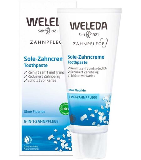 Anwendungsgebiet von Weleda Sole ZahncremeWeleda Sole Zahncreme mit einem löslichen Putzkörper aus Natriumbicarbonat (Salz) beugt Karies durch die Neutralisation schädlicher Säuren vor und hemmt somit auch die Neubildung von Zahnstein. Sie enthält keine Fluoride. Der einzigartige Putzkörper aus Salzkristallen regt außerdem den Speichelfluss und damit die physiologische Selbstreinigung an. Der angenehm prickelnde, leicht salzige Geschmack wird abgerundet durch anregendes Pfefferminzöl, das langanhaltende Frische schafft. Wirkstoffe / Inhaltsstoffe / ZutatenInhaltsstoffe von Weleda Sole Zahncreme: Water (Aqua), Sodium Bicarbonate, Glycerin, Silica, Prunus Spinosa Fruit Juice, Mentha Piperita (Peppermint) Oil, Commiphora Myrrha Extract, Krameria Triandra Root Extract, Aesculus Hippocastanum (Horse Chestnut) Bark Extract, Arum Maculatum Root Extract**, Sodium Chloride, Cyanopsis Tetragonoloba (Guar) Gum, Simmondsia Chinensis (Jojoba) Seed Oil, Alcohol, Esculin, Sodium Sulfate, Sodium Silicate, Flavour (Aroma)*, Limonene*, Linalool*. *from natural essential oils** in highly diluted form GegenanzeigenBei bekannter Überempfindlichkeit gegen einen der Inhaltsstoffe sollte dieses Produkt nicht angewendet werden. DosierungAnwendungsempfehlung von Weleda Sole Zahncreme: Geben Sie 2 cm Zahncreme auf die trockene Zahnbürste. Durch den angeregten Speichelfluß ist genügend Putzflüssigkeit vorhanden. Weleda Sole Zahncreme können in Ihrer Versandapotheke www.juvalis.de erworben werden. ...