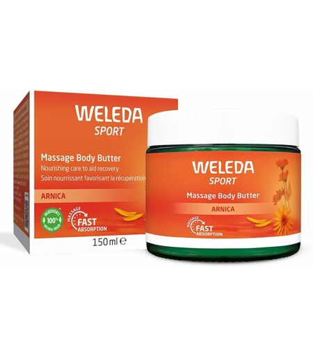 Anwendungsgebiet von Weleda Sport Massage Body ButterWeleda Sport Massage Body Butter - 2-in-1 Pflege für Ihre Regeneration – entspannende Massage & intensive FeuchtigkeitEntdecken Sie eine Körperpflege, die mehr kann: Die Weleda Sport Massage Body Butter mit Arnika kombiniert die wohltuende Wirkung einer Massage mit intensiver Feuchtigkeitspflege – perfekt abgestimmt auf die Bedürfnisse nach sportlicher Aktivität.• 2-in-1 Effekt: Unterstützt die Regeneration und pflegt intensiv• Lindert Muskelverspannungen durch Massage• Ideal zur Anwendung nach dem Training• Versorgt die Haut nachhaltig mit Feuchtigkeit• 100 % natürliche Inhaltsstoffe• Schnell einziehende Textur für ein geschmeidiges HautgefühlNach dem Sport ist Ihre Regeneration entscheidend. Die Weleda Sport Massage Body Butter mit Arnika schenkt Ihrem Körper genau das, was er jetzt braucht: tiefenwirksame Pflege und gezielte Entspannung. Eine Massage mit der reichhaltigen, aber schnell einziehenden Formulierung hilft, Muskelkater zu lindern und die Erholung zu fördern. Die intensiv feuchtigkeitsspendende Pflegeformel mit natürlichen Inhaltsstoffen stärkt zudem die Hautbarriere und macht Ihre Haut geschmeidig und weich.Erleben Sie die Kombination aus Erholung und Pflege – ganz natürlich, ganz Sie.Wirkstoffe / Inhaltsstoffe / ZutatenWeleda Sport Massage Body Butter enthält:Water (Aqua), Butyrospermum Parkii (Shea) Butter+, Glycerin, Helianthus Annuus (Sunflower) Seed Oil+, Theobroma Cacao (Cocoa) Seed Butter+, Olea Europaea (Olive) Fruit Oil+, Pentylene Glycol, Behenyl Alcohol, Cetearyl Alcohol, Fragrance (Parfum), Sodium Cetearyl Sulfate, Arnica Montana Flower+ Extract, Betula Alba Leaf Extract, Betaine, Glyceryl Caprylate, Sodium Caproyl/Lauroyl Lactylate, Alpha-Terpinene, Beta-Caryophyllene, Camphor, Coumarin, Geraniol, Geranyl Acetate, Lavandula Oil/ Extract, Limonene, Linalool, Linalyl Acetate, Pinene, Terpinolene, Terpineol. +from organic cultivation Fragrance made of ...