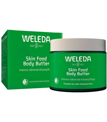 Anwendungsgebiet von Weleda Skin Food Body ButterWeleda Skin Food Body Butter ist eine intensiv pflegende Körperbutter mit einzigartiger Textur. Sie pflegt trockene bis sehr trockene Haut und macht sie weich und geschmeidig.