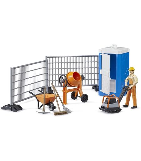 BRUDER bworld Baustellenset, ab 4 Jahren, 1:16, inkl. Bauarbeiter, Rüttelplatte, Mischmaschine, WC