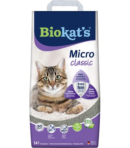 Biokat's Micro Classic Katzenstreu ist die ideale Wahl für alle, die eine natürliche und effektive Lösung für die Katzentoilette suchen. Diese Streu besteht aus natürlichem Ton deutscher Herkunft und ist parfümfrei, was sie perfekt für geruchsempfindliche Katzen und ihre Besitzer macht. Die extrafeine Körnung sorgt dafür, dass sie sanft zu den Pfoten deiner Katze ist und gleichzeitig eine maximale Geruchsbindung bietet. Dank ihrer starken Klumpenbildung ist Biokat's Micro Classic Katzenstreu besonders einfach zu reinigen. Die flachen und festen Klumpen lassen sich mühelos entnehmen, was die Reinigung der Katzentoilette zum Kinderspiel macht. Zudem ist die Streu zu 99% staubfrei, was nicht nur die Umgebung sauber hält, sondern auch ideal für empfindliche Atemwege ist. Biokat's Micro Classic Katzenstreu im Überblick: Naturbelassene Einstreu für Katzentoiletten Reines Naturprodukt: aus natürlichem Ton deutscher Herkunft Parfümfrei: ohne Duftstoffe, perfekt für geruchsempfindliche Katzen Katzeneltern 300% Saugfähigkeit: nimmt Flüssigkeiten zuverlässig auf Stark klumpend: bildet flache feste Klumpen, einfach zu entnehmen für leichte Reinigung Extrafeine Körnung: sanft zu den Katzenpfoten Maximale Geruchsbindung: neutralisiert unangenehme Gerüche 99% staubfrei: hält die Umgebung sauber, ideal für empfindliche Atemwege Hohe Qualität: made in Germany ...