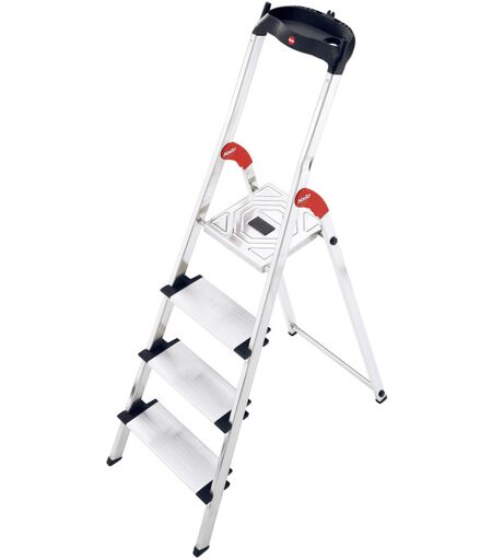 Hailo XXL 4-stufige Stufenstehleier mit EasyClix Garden Füße Aluminium-Sicherheits-Haushaltsleiter Geeignet für Hailo EasyClix Garten Wechselfüße XXL-Stufen: breit, gerundet, mit Anti-Rutsch-Riffelung, Randabdeckung und extratiefer Standfläche von 130 mm! Multifunktions-Schale für Farbdosen und Werkzeuge, mit Kabelklemme Rutschsicherer Steckfuß Platzsparend zusammengeklappt durch Parkbucht in den Stufen Alu-Plattform mit Anti-Rutsch-Riffelung und Brückenheber Mehr Kniefreiheit durch parallele Holme Sichere, HighTech-vernietete Holm-Stufenverbindung Belastbar bis 150 kg Stufen: 4 Arbeitshöhe: ca. 2,85 m Material Aluminium, Kunststoff Maße ca. H 161 cm x B 45 cm x T 14 cm Gewicht ca. 4,4 kg ...