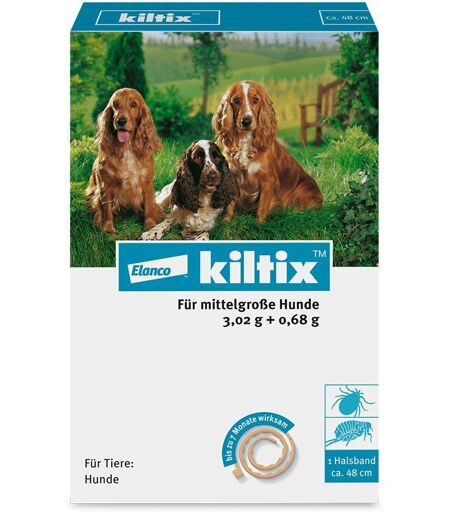 Kiltix Halsband für mittelgroße Hunde gegen Zecken und Flöhe, bis zu 7 Monate Wirkung, Länge ca. 48 cm Zecken und Floh ade! Dank Kiltix! Ob im Wald oder auf Feldern und Wiesen: sobald die Temperaturen im Frühling wieder milder werden, lauern Zecken auf Hunde beim Spaziergang. Dabei sind Zecken nicht nur besonders lästig, sondern können tatsächlich gefährliche Krankheitserreger bei ihrem Stich auf den Hund übertragen. In Deutschland sind insbesondere der Gemeine Holzbock und die Wiesenzecke auf dem Vormarsch. Aber auch Flöhe sind ganzjährig aktiv und können - zu spät entdeckt - zu einer echten Plage werden. Natürlich ist es bei einem Spaziergang mit dem Hund nicht immer möglich, den Vierbeiner von der Gefahrenzone fernzuhalten und oft bleibt die ein oder andere Zecke bei besonders dichtem oder dunklem Fellkleid beim Absuchen auch unentdeckt. Schützen Sie daher Ihren Hund am besten ganzjährig gegen lästige Flöhe und Zecken und beugen Sie damit Juckreiz, Hautirritationen und der Übertragung verschiedener Krankheitserreger vor. Die Vorteile des Kiltix Halsbandes für mittelgroße Hunde Kiltix ist ein Zecken- und Flohschutzband mit einer Wirkung bis zu 7 Monate gegen Flöhe und Zecken. Die Wirkstoffe im Kiltix Halsband befinden sich in Puderform auf dem Halsband und werden an das Haarkleid des Hundes abgegeben und auf der gesamten Körperoberfläche verteilt. Eine Überdosierung mit nur einem Halsband ist dadurch nicht möglich. Das Kiltix Halsband für mittelgroße Hunde ist ca. 48 cm lang und bietet besondere Anwendersicherheit: Ein Lösemechanismus lockert das Band bei starkem Zug und beugt Verfangen vor. Durch die lange Wirksamkeit und gute Verträglichkeit ist Kiltix somit eine komfortable Lösung, um den Hund vor lästigen Zecken und Flöhe zu schützen.Das Kiltix F für mittelgroße Hunde Halsband wird zur Bekämpfung und Vorbeugung von Parasiten angewendet. Das Halsband enthält eine Kombination der Wirkstoffe Propoxur und Flumethrin. Diese Inhaltsstoffe wirken bis zu sieben Monate nach dem Anlegen des Halsbandes vor Zecken und Flöhen. Das Kiltix F für mittelgroße Hunde Halsband bekämpft den Holzbock, die braune Hundezecke und Flöhe und schützt vor einem Neubefall.Länge:48 cm.Pflichttext: Kiltix für kleine Hunde, 1,25 g + 0,28 g Halsband, Kiltix für mittelgroße Hunde, 3,02 g + 0,68 g Halsband, Kiltix für große Hunde, 4,5 g + 1,013 g Halsband. Für Tiere. Anwendungsgebiete: Zur Bekämpfung des Holzbockes (Ixodes ricinus), der Braunen Hundezecke (Rhipicephalus sanguineus) und von Flöhen (Ctenocephalides canis/felis) bei Hunden sowie zum Schutz vor Neubefall. Das Halsband für kleine Hunde wirkt nach dem Anlegen gegen Zecken und Flöhe bis zu 6 Monate, das Halsband für mittelgroße Hunde und das Halsband für große Hunde wirken nach dem Anlegen gegen Zecken und Flöhe bis zu 7 Monate. Warnhinweis: Tiere mit Kiltix Halsbändern sind von Kleinkindern und Säuglingen fernzuhalten. Zu Risiken und Nebenwirkungen lesen Sie die Packungsbeilage und fragen Sie Ihren Tierarzt oder... ...