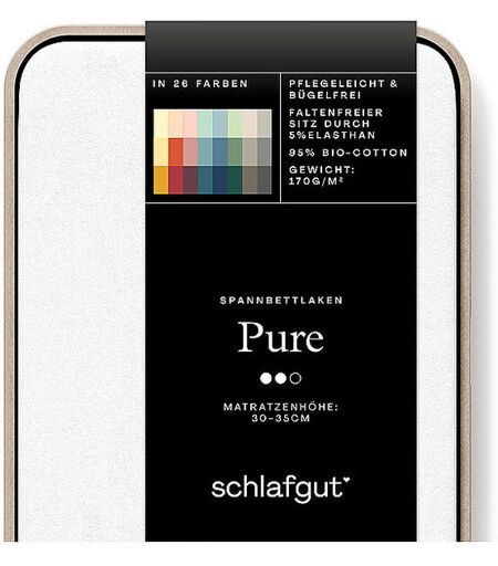 Dehnbar, blickdicht und straff: Unser Pure Spannbettlaken aus fließender Bio-Makobaumwolle und 5% Elasthan lässt sich einfach beziehen und bleibt schön faltenfrei – auch nach dem Schlafen. Und ganz gleich in welcher Farbe, es ist Made in Green – sagt auch Oeko-Tex®. Material: 95 % gekämmte Bio-Baumwolle und 5 % Elasthan - gleichmäßige, blickdichte Oberfläche und straffer, faltenfreier Sitz 5 % Elasthan - passt auch 220cm lange Matratzen Reaktivfärbung bis tief in die Faser - farbecht auch nach vielen Waschgängen mit Antipilling-Ausrüstung - keine Fusseln original Fulflex-Gummi - bleibt in Form pflegeleicht - trocknergeeignet und bügelfrei mittelschwere Qualität - Flächengewicht: ca. 170g / m2 »Made in Green« by OEKO-TEX® - schadstoffrei und umweltfreundlich Carefully designed in Germany Maximale Matratzenhöhe: bis 30 cm L- Passend für 140x200cm bis160x220cm. ...