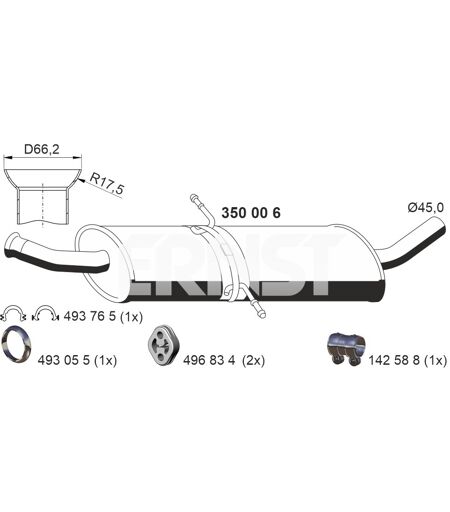 Ernst Mittelschalldämpfer Für Mercedes-Benz A1694905910 A1694906110 A1694906310 350006