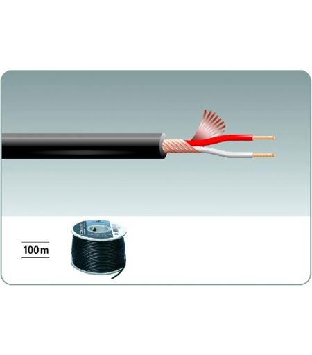 Mikrofonkabel: 100-m-Rolle, 2 x 0,12 mm2, Abgeschirmt, Außendurchmesser Ø 3,5 mm, Kabelkapazität 165 pF/m, Technische Daten: Einsatzzweck: Mikrofon, Länge: 100 m, Farbe: Schwarz, Innenleiter: 2 x 0,12 mm2, Material: Kupfer, Aderanzahl: 2, Kabeldurchmesser: Ø 3,5 mm, Schirmung: gemeinsam, einfach, Kapazität: 165 pF/m, Verpackung: Rolle, Gewicht: 2,013 kg ...