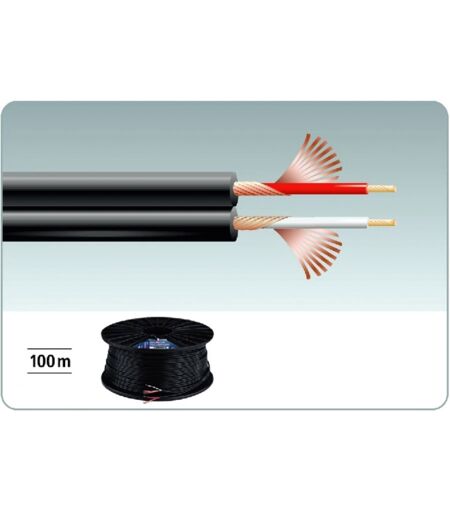 Audiokabel: mit hochflexibler Litze100-m-Rolle, 2 x 0,12 mm2, Getrennte Abschirmung, Außendurchmesser 2 x Ø 2,6 mm, Kapazität 250 pF/m, Technische Daten: Einsatzzweck: Audio, Länge: 100 m, Farbe: Schwarz, Innenleiter: 2 x 0,12 mm2, Material: Kupfer, Aderanzahl: 2, Kabeldurchmesser: 2 x Ø 2,6 mm, Metermarkierung: ja, Schirmung: einzeln, einfach, Kapazität: 250 pF/m, Verpackung: Rolle, Gewicht: 2,36 kg ...