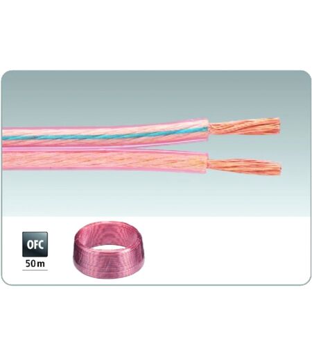 Lautsprecherkabel: "HIGH QUALITY, HIGHLY FLEXIBLE": 50-m-Ring, Transparente Isolierung mit blauer Adernkennzeichnung, Technische Daten: Einsatzzweck: Lautsprecher, Länge: 50 m, Farbe: Transparent, Innenleiter: 2 x 1,5 mm2, Material: OFC, Aderanzahl: 2, Verpackung: Ring, Gewicht: 2,28 kg, Sonstiges: Adernkennzeichnung, blau ...