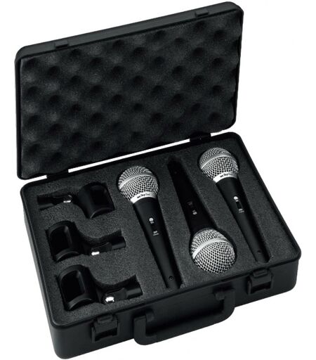 Dynamisches-Vokal-Mikrofon-Set: Ideales 3er-Set für Gesangsperformances im Recording- und Live-Einsatz. Der speziell für Gesangsstimmen optimierte Frequenzgang macht das DM-3SET zum soliden Arbeitsgerät für alle Vokalisten.Breitbandiger Übertragungsbereich, Hohe Rückkopplungssicherheit, Integrierter Wind-/Popschutz, Roadtauglich durch Druckgussgehäuse und Stahlkorb, Mitgeliefertes Zubehör: robuster Hartschalen-Koffer, 3 x Stativklemme 16 mm (⅝"), Technische Daten: Art: Gesangsmikrofon, Übertragungsart: Kabel, Charakteristik: Niere, System: dynamisch, Audio-Frequenzbereich: 50-15000 Hz, Nennimpedanz: 500 Ω, Empfindlichkeit: 2 mV/Pa, Maximaler Schalldruck: 120 dB, Gehäusematerial: Zink-Druckguss, Zul. Einsatztemperatur: 0-40 °C, Abmessungen: Ø 53 mm x 180 mm, Gewicht: 285 g, Anschluss: XLR, sym., Verpackungsmaße (B x H x L): 0,225 x 0,085 x 0,29 m, Bruttogewicht: 1,395 kg, Nettogewicht: 1,395 kg ...