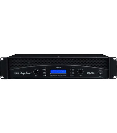 Professioneller Stereo-PA-Verstärker: mit integrierter Frequenzweiche und LimiterLCD-Anzeige für Temperatur, Betriebsmodus, Schutzfunktion, Interne Frequenzweiche 120 Hz, 24 dB/Okt., umschaltbar Subwoofer-, Full Range- oder Satelliten-Betrieb, 3 Betriebsarten einstellbar (Stereo, Parallel oder Brücke), Temperaturgeregelte Lüfter, 2 Pegelregler, Groundlift-Funktion, Lautsprecher-Einschaltverzögerung, Geschützt gegen Kurzschluss, Überhitzung und Gleichspannungsüberlagerung an den Ausgängen durch Schutzschaltung mit LED-Anzeige, Pro Kanal LEDs für Betriebsspannung, Level und Limiter, NEUTRIK-SPEAKON-Anschlüsse, STA-1400, STA-1000 und STA-600 werden mit Kaltgeräte-Einbausteckern und passenden Netzkabeln geliefert.BEAT 01/2012: „Zum Test bringen wir 2 MEGA-112 als Topteile sowie einen MEGA-118SUB an den Start. Als Endstufen verwenden wir die STA-600 und die STA-1400 für die Tops im Bi-Amping und die STA-1000 für den Bass. Wir gönnen uns als amtliche Steuerung das digitale Lautsprechermanagement DSM-260. Testlocation ist eine kleine Fabrikhalle ... die Fabrikhalle mit ihren vielen Fenstern, dem Betonboden und etlichen Kachelflächen lässt alle Höhen gnadenlos werden ... schnell zähmen wir diese mit den präzisen EQs des DSM-260 ... schnell und intuitiv haben wir den Sound optimiert. ... wir geben Vollgas und sind beeindruckt. Der Sub macht wirklich Alarm und erweist sich als äußerst standfest. Die MEGA-112 weiß mit großer Ausgewogenheit zu überzeugen. Das Ergebnis ist satte, dynamische Tanzmusik mit wirklich gutem Sound. 400 Gäste, auch mit etwas anspruchsvolleren Ohren lassen sich mit dieser PA locker professionell beschallen. Das gefällt uns. Wenn man öfter in wechselnden Räumlichkeiten aktiv ist, dann ist die hier gewählte PA-Kombination schon sehr praktisch.“Technische Daten: Ausgangsleistung, gesamt: 1000 W, Nennleistung: 600 W, Leistung an 4 Ω: 2 x 300 W, Leistung an 8 Ω: 2 x 200 W, Leistung bei 8-Ω-Brückenbetrieb: 1 x 550 W, Kanäle: 2, Eingänge: 1 V/20 kΩ, Frequenzbereich: 20-20000 Hz, Frequenzweiche: 24 dB/Okt., Trennfrequenz: 120 Hz, Integrierter Limiter: ja, Störabstand: > 95 dB, Übersprechdämpfung: > 60 dB, Klirrfaktor: , Netzspannung: ~ 230 V, Netzfrequenz: 50 Hz, Leistungsaufnahme Betrieb: 1000 VA, Zul. Einsatztemperatur: 0-40 °C, Breite: 482 mm, Höhe: 88 mm, Tiefe: 418 mm, Höheneinheiten HE: 2, Gewicht: 12,5 kg, Anschlüsse: 1 x 3-Pol-XLR L/R, sym.1 x 6,3-mm-Klinke L/R, sym. 1 x NEUTRIK-SPEAKON L/R 2 x Schraubklemmen-Paar , Verpackungsmaße (B x H x L): 0,57 x 0,16 x 0,58 m, Bruttogewicht: 16,56 kg, Nettogewicht: 13,16 kg ...
