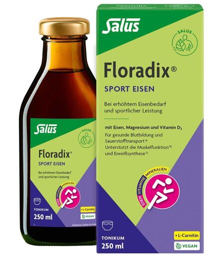 Anwendungsgebiet von Floradix Sport Eisen TonikumFloradix Sport Eisen Tonikum bei erhöhtem Eisenbedarf und sportlicher Leistung - mit Eisen, Vitaminen und Mineralstoffen.