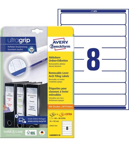 Avery Zweckform Ordneretiketten 34,0 x 192,0 mm weiß L6060REV-20