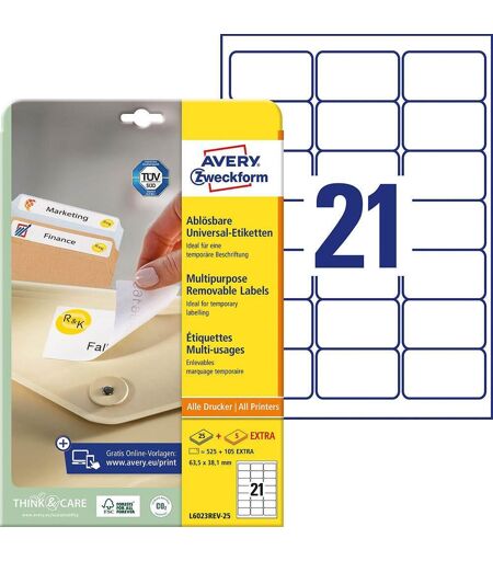 Avery Zweckform Etiketten L6023REV-25 weiß 63,5 x 38,1 mm - 630 Stück