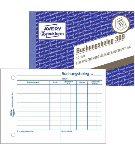 Avery Zweckform Formularbuch Buchungsbeleg DIN A6 quer 1x 50 Seiten 309