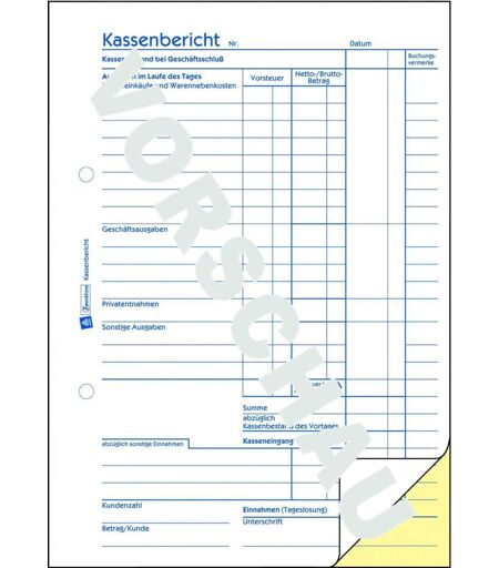 Avery Zweckform Formularbuch Kassenbericht DIN A5 2x 50 Seiten 317