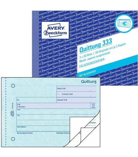 Avery Zweckform Formularbuch Quittung, MwSt. separat ausgewiesen DIN A6 quer 3x 50 Seiten 333