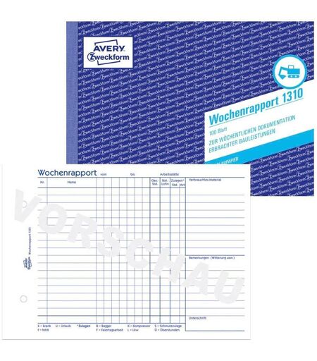Avery Zweckform Wochenrapport Formularbuch 1310 - 1 x 100 Blatt