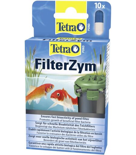 Tetra Pond FilterZym 10 Kapseln Produktnummer: 0689502173 Tetra Pond FilterZym unterstützt die biologische Reinigungskraft des Gartenteichfilters. Normalerweise dauert es zum Beispiel im Frühling drei bis vier Wochen, bis sich nützliche Bakterien wieder ausreichend im und am Filter angesiedelt haben. In Tetra Pond FilterZym enthaltene natürliche Kolloide begünstigen das Wachstum und die Ansiedlung dieser Filterbakterien. Die ebenfalls enthaltenen Enzyme verbessern den Abbau von organischen Verunreinigungen. Dadurch bewirkt es nicht nur den Abbau von organischen Substanzen und Verunreinigungen wie zum Beispiel Futter- und Pflanzenreste oder Mulm. Auch giftiges Ammoniak und Nitrit, die den Gartenteichbewohnern schaden können, werden durch die regelmäßige Anwendung des Produktes reduziert. Das macht Tetra Pond FilterZym zu einem zuverlässigen Wasserpflegemittel für alle Gartenteiche. Produktmerkmale: Pflege Wasserpflege Unterstützt die biologische Reinigungskraft des Teichfilters Verbessert die Wasserqualität Enthält natürliche organische Kolloide, die die Ansiedlung nützlicher Mikroorganismen auf dem Filtermaterial unterstützen Verbessert den Abbau organischer Verunreinigungen (wie Futterreste, Fischausscheidungen, abgestorbene Pflanzenreste, Mulm, etc.). Unterstützt den Abbau von Ammoniak und Nitrit Dosierungshinweis:3 Kapseln bei neuem Filtermaterial, Wiederinbetriebnahme des Filters nach dem Winter und nach Reinigung der Filtermaterialien. 2 Kapseln alle 4 Wochen für eine dauerhafte Bioaktivität im Filter. Kapseln auseinanderziehen und das Pulver direkt auf das Filtermaterial in den Filter streuen. 2 Stunden bei ausgeschalteter Pumpe einwirken lassen. Wir empfehlen die gleichzeitige Anwendung von Tetra Pond AquaSafe, um die für Fische schädlichen Stoffe wie Chlor und Schwermetalle aus dem Leitungswasser zu entfernen. Herstellerinformationen: Tetra GmbH Herrenteich 78 49324 Melle, Deutschland eMail: service@tetra.de Herstellernr. 180697 Verbraucherhinweise Gefahrenhinweise Enthält Protease. Kann allergische Reaktionen hervorrufen. Sicherheitshinweise Darf nicht in die Hände von Kindern gelangen.Ist ärztlicher Rat erforderlich, Verpackung oder Kennzeichnungsetikett bereithalten.Lesen Sie sämtliche Anweisungen aufmerksam und befolgen Sie diese. ...