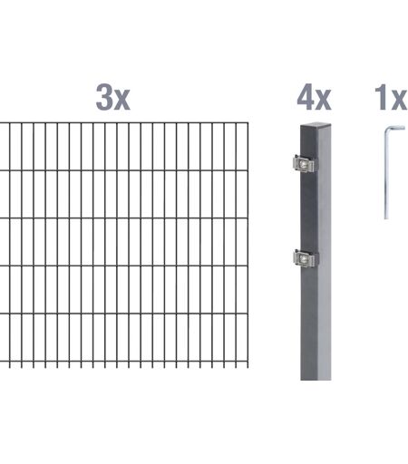 Alberts Doppelstabmatten-Grundset 6 m 200 x 80 cm 6/5/6 anthrazit