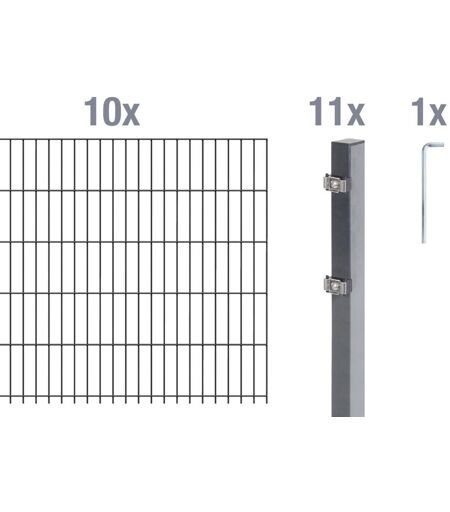 Alberts Doppelstabmatten-Grundset 20 m 200 x 100 cm 6/5/6 anthrazit