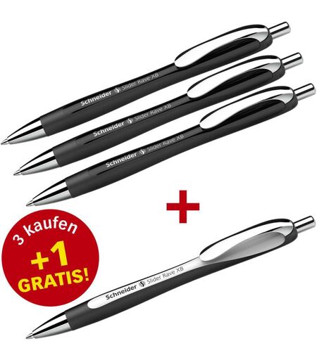 Schneider Slider Rave XB schwarz Kugelschreiber 0.7 mm, Schreibfarbe: Blau, 3 St. + GRATIS 1 Slider Rave XB 132584