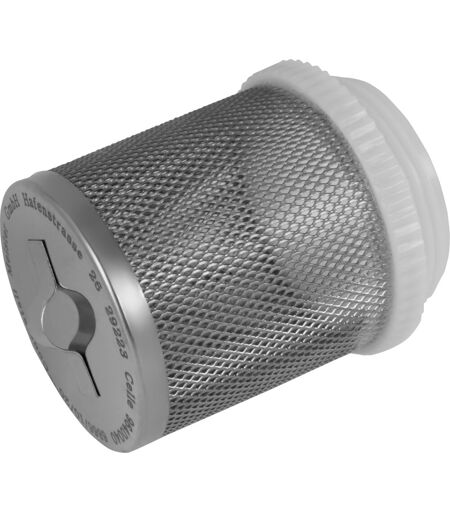 Cornat Saugkorb AG 47,8 mm (1 1/2") Produktnummer: 0692152415 Saugkorb aus feinmaschigem Edelstahl mit Kunststoffgewinde AG 1 1/2" . Der Saugkorb ist ein Teil des Zwischenventils, welches den Rückfluss des Fördermediums. z.B. beim Ausschalten einer Pumpe verhindert. Verhindert einen Eintritt von Verunreinigungen und das Abreißen der Flüssigkeitssäule in der Saugleitung bei Unterbrechung des Pumpvorgangs. Anschluss: 47,8 mm (1 1/2") Material: Edelstahl / Kunststoff Maße: 7,46 x 5,78 cm (L x Ø) Farbe: silber, Weiß Herstellerinformationen: Conmetall Meister GmbH Hafenstrasse 26 29223 Celle, Deutschland eMail: info@conmetallmeister.de Herstellernr. WU9640040 ...
