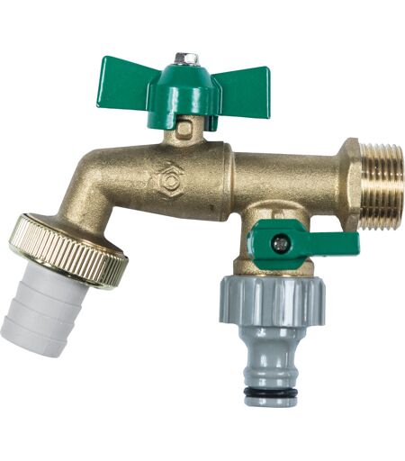 Meister Zweiwege-Kugel-Auslaufventil 3/4" Messing Ø 19 mm Produktnummer: 0692150014 Meister Zweiwege-Kugel-Auslaufventil 3/4" Messing,Matt, Mit Flügelgriff, Mit zwei separaten Abgängen, Mit Schlauchanschluss für Steckkupplungen 3/4" AG, inkl. Schlauchveschraubung 1" IG Tülle Ø 19mm, Anschlussgewinde 3/4" AG Anschluss: 19,05 mm (3/4") Material: Messing Durchmesser: 19 mm Farbe: messing, grün Mit Flügelgriff Zwei separate Ausgänge Herstellerinformationen: Conmetall Meister GmbH Hafenstrasse 26 29223 Celle, Deutschland eMail: info@conmetallmeister.de Herstellernr. WU9640200 ...
