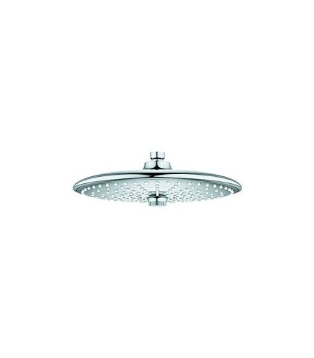 Grohe Euphoria 260 Kopfbrause mit EcoJoy Artikelnummer: 26457000 zur Decken- oder Wandmontage Farbe: chrom Ø 260 mm 3 Strahlarten: Rain, SmartRain, Jet Wechsel in benachbarte Strahlart durch Drehen am Knopf in der Brausenmitte (SprayZoom) Einstellung der Wassermenge durch Drehen am SmartControl-Knopf (ProGrip) Gleichmäßige Wasserverteilung auf alle aktiven Düsen (GROHE DreamSpray®) Kugelgelenk mit Schwenkwinkel ± 15° Anschlussgewinde ½" mit GROHE DreamSpray: gleichmäßige Wasserverteilung auf jede einzelne Düse mit GROHE EcoJoy: redzudierter Wasserverbrauch bei vollem Duschgenuss mit GROHE StarLight Oberfläche: pflegeleicht durch langlebige Chrombeschichtung mit SpeedClean Antikalk-System mit InnerWaterGuide: Innenliegende separate Wasserführung schützt die Chromoberfläche ...