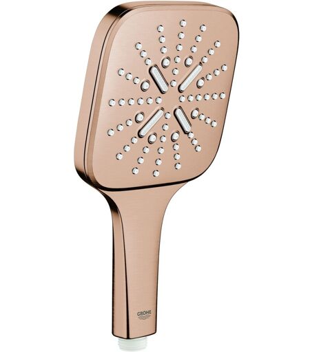 GROHE Handbrause Rainshower SmartActive 130 Cube 26582, 3 Strahlarten, Brauseboden warm sunset gebürstet, maximaler Durchfluss bei 3 bar: 8.5 l/min, warm sunset gebürstet, 26582DL0 Rainshower SmartActive 130 Cube Handbrause 3 Strahlarten Brauseboden in warm sunset gebürstet Strahlarten: GROHE Rain mit DripStop, Jet mit DripStop, ActiveMassage GROHE Water Saving - weniger Wasser, perfekter Wasserfluss Maximaler Durchfluss (bei 3 bar): 8,5 l/min GROHE DreamSpray Perfektes Strahlbild GROHE SmartTip Strahlumstellung per Tastendruck GROHE Long-Life Oberfläche SpeedClean Antikalk-System Innenliegende separate Wasserführung ...
