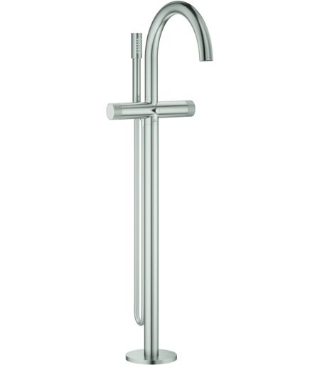 GROHE Wannenbatterie Atrio Private Collection 25229, Bodenmontage, Knopfbetätigung mit Einlagen, Fertigmontageset für 45 984, supersteel, 25229DC0 Atrio Private Collection Wannenbatterie, 1/2'' Bodenmontage Fertigmontageset für 45 984 Keramik-Oberteile 1/2'', 90° GROHE Long-Life Oberfläche automatische Umstellung: Wanne/Brause Ausladung 301 mm integrierter Rückflussverhinderer im Brauseabgang 1/2'' mit Brausehalter Silverflex Brauseschlauch 1.250 mm (28 362) Eigensicher gegen Rückfließen Knopfbetätigung mit Einlagen, kann kombiniert werden mit48 460 000 oder 48 461 000 (separat zu bestellen) ohne Rohbauset 45 984 (bitte separat bestellen) ...