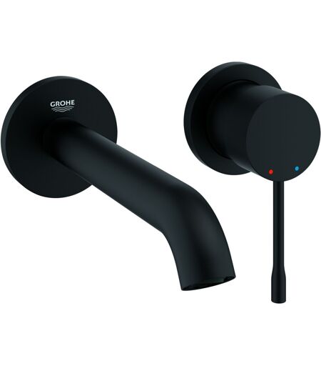 GROHE 2-Loch-Waschtischbatterie Essence 29192_1, Wandmontage, Ausladung 183 mm, Fertigmontageset für 23 571, phantom black, 29192KF1 Essence 2-Loch-Waschtischbatterie Wandmontage Fertigmontageset für 23 571 000 (ohne Unterputz-Einbaukörper) GROHE Water Saving - weniger Wasser, perfekter Wasserfluss Maximaler Durchfluss (bei 3 bar): 5 l/min GROHE AquaGuide verstellbarer Mousseur Stichmaß 110 mm Ausladung 183 mm ...