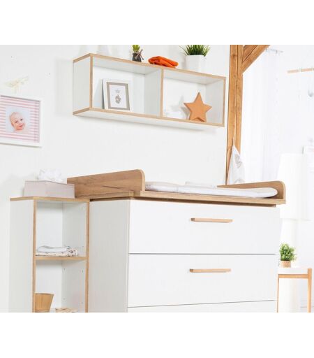 roba Wandregal »Finn« Farbe: Weiß Material: Korpus und Rückwand Spanplatte, melaminbeschichtet Maße: B x H x T ca. 90 x 29 x 20 cm Inhalt: Inkl. Anleitung Gewicht: Ca. 9 kg Tragkraft: Böden je max. 5 kg Sonstige Hinweise: Artikel wird zerlegt geliefert Lieferung bis zur Bordsteinkante Keine Inselbelieferung Hersteller-Artikel-Nummer: 1511792 Hersteller: roba Baumann GmbH, Feldstraße 14, 96237 Ebersdorf bei Coburg service@roba-kids.com Das Wandregal »Finn« ist die perfekte Ergänzung zur Wickelkommode »Finn«2 Regalfächer bieten Platz für WickelutensilienMit weiteren Kindermöbeln aus der Serie »Finn« lässt sich ein komplettes, stilvolles Kinder- oder Babyzimmer einrichten ...