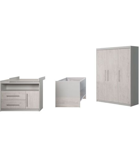 Kinderbett: mitwachsend 3-fach höhenverstellbar 3 herausnehmbare Schlupfsprossen ermöglichen den sicheren Ein- und Ausstieg Liegefläche: 70x140cm Entspricht aktuellen Sicherheitsstandards nach EN 716 – 1:2017 + Ac:2019 Entwickelt in Deutschland Montagefreundlich Wickelkommode: Offenes Fach, zwei Schubladen und Stauraum hinter der Tür Wickelhöhe: 90 cm Bietet viel Stauraum für Wickelutensilien Ohne sichtbare Schrauben Hochwertige Edelstahl-Relinggriffe Abnehmbarer Wickelansatz: Nutzbar als herkömmliche Kommode Entspricht den aktuellen Sicherheitsstandards nach EN 12221 – 1+2:2008 + A1:2013 Entwickelt in Deutschland Montagefreundlich Kleiderschrank: Kleiderstange und sechs Fachböden Danke der Höhe von 1,90 m wächst der Schrank bis zum Erwachsenwerden mit Entwickelt in Deutschland Montagefreundlich Maße Kinderbett: Liegefläche: 70x140 cm, H 80 x B 76 x T 142 cm Wickelkommode: H 98 x B 117 cm, Tiefe mit/ohne Wickelansatz 75/39 cm, Wickelhöhe: 90 cm Kleiderschrank: H 190 x B 130 x T 52 cm Gewicht Set-Gesamtgewicht: ca. 172,10 kg ...