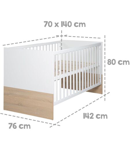 roba »Gabriella« Kombi-Kinderbett, 70 x 140 cm Farbe: Weiß Material: Rahmen Spanplatte, melaminbeschichtet Seitengitter Schichtholz Maße: B x H x T ca. 76 x 80 x 142 cm Inhalt: Inkl. Anleitung Gewicht: Ca. 27 kg Tragkraft: Max. 50 kg Sonstige Hinweise: Artikel wird zerlegt geliefert Lieferung bis zur Bordsteinkante Keine Inselbelieferung Hersteller-Artikel-Nummer: 42491A Hersteller: roba Baumann GmbH, Feldstraße 14, 96237 Ebersdorf bei Coburg service@roba-kids.com Kombi-Kinderbett, umbaubar zum Juniorbett mit separat erhältlichen UmbauseitenDas Babybett ist 3-fach höhenverstellbar und besonders rückenfreundlich3 herausnehmbare Schlupfsprossen ...
