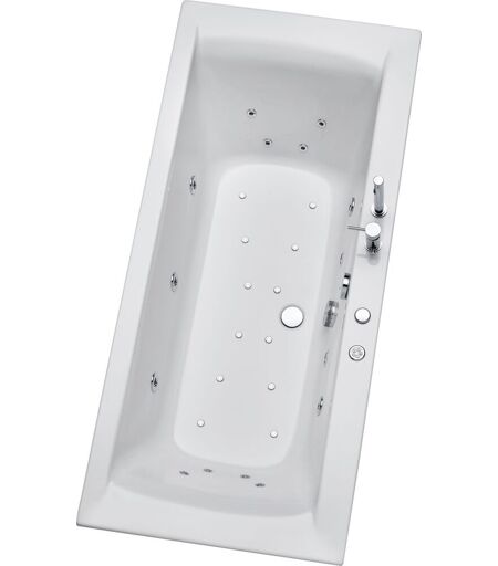 Ottofond Whirlpool-Badewannen-Komplettset Rosa 200 cm mit Armatur S2000 Produktnummer: 0782080204 Ein Whirlpool von Ottofond - dies bedeutet tägliches wohltuendes Vergnügen. Erleben Sie die vitalisierende Wirkung des Wassers, das sanfte Prickeln auf Ihrer Haut und die sprudelnde Wärme. Ein Whirlpool löst körperliche Verkrampfungen und psychische Anspannung. Sie bleiben fit, gesund und schön. Machen Sie einen entscheidenden Schritt und erhalten Sie Vitalität und Harmonie von Körper und Seele. Das Whirlpool-Komplettsystem "Badewanne Rosa" ist komplett installiert und anschlussfertig. Dieses System ist eine Kombination aus einem Hydra-Jet-Massage- und Luftsystem und beinhaltet folgende Ausstattung: Bei der Whirlpoolmontage ist im Bereich der Aggregate unbedingt eine Revisionsöffnung vorzusehen, wenn der Whirlpool abgemauert wird. Der Anschluß darf nur von einem behördlich konzessionierten Fachbetrieb durchgeführt werden. Eine Kombination mit einem Hartschaumwannenträger ist nicht kompatibel. Farbe: weiß sichtbare Whirlpoolkomponenten chrom Maß: 200 x 90 x 45 cm Fassungsvermögen: 310 L 5 richtungsverstellbare Jetdüsen 8 Micro-Jetdüsen, je 4 im Rücken- und Fußbereich 12 Luftdüsen im Wannenboden Trockenlaufschutz (verhindert den Betrieb der Pumpe ohne Wasser) elektronische Steuerung mit Taster im Wannenrand der Luftregler reguliert durch Beimischung von Luft die Intensität des Massagestrahls zuschaltbare Intervallautomatik für die Pumpe stufenlose Regulierung des Luftsystems und Intervallfunktion automatische Nachtrocknung des Luftsystems Luftsystem mit Vorwärmung Farblichtwechsler (2 LED-Farblichtscheinwerfer: Farben rot, grün, gelb, blau und Mischfarben) Restwasserentleerung über Whirlpoolpumpe und das System 2-Loch-Wannenrandarmatur S2000 einschließlich LUXUS-Ab- u. Überlaufgarnitur mit Wassereinlauf (Befüllung der Wanne durch den Überlauf) Fußgestell komplett installiert und anschlußfertig Herstellerinformationen: OTTOFOND GmbH Graf-Zeppelin-Straße 42 33181 Bad Wünnenberg-Haaren, Deutschland eMail: vertrieb@ottofond.de Herstellernr. 70037 ...