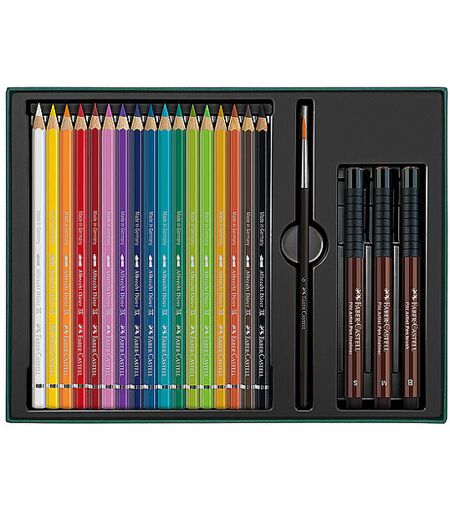 Aquarell trifft wasserfest: Albrecht Dürer & Pitt Artist Pen Albrecht Dürer: Hochwertige Pigmente von unübertroffener Lichtbeständigkeit und Farbbrillanz Weicher, farbsatter Abstrich Vollständig wasservermalbare Mine Dicke 3.8 mm Mine Hohe Bruchfestigkeit durch Sekuralverleimung (SV) Holz aus nachhaltiger Forstwirtschaft Pitt Artist Pen: Pigmentierte Zeichentusche Höchste Lichtbeständigkeit Wasserfest, permanent Geruchsneutral, säurefrei, pH-neutral Schlägt nicht durchs Papier ...