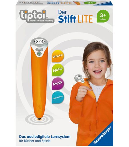 Das audiodigitale Lernsystem USB-Verbindungkabel enthalten. Audiodateien zu Büchern und Spielen mit dem tiptoi Manager (Programm für PC und Mac) einfach herunterladen. Der tiptoi-Stift Lite ist mit allen tiptoi-Büchern und -Spielen (außer den blauen Produkten aus der Create Reihe) kompatibel. Achtung! Batterien (2xAAA) sind nicht enthalten und müssen separat erworben werden. Der tiptoi-Stift Lite ist nicht mit der tiptoi Ladestation kompatibel. Altersempfehlung: ab 3 Jahren Maße ca. 27,5 x 19,2 x 5,5 cm Gewicht ca. 433 g Warnhinweise Achtung! Nicht für Kinder unter 36 Monaten geeignet. Kleine Teile. Erstickungsgefahr. ...