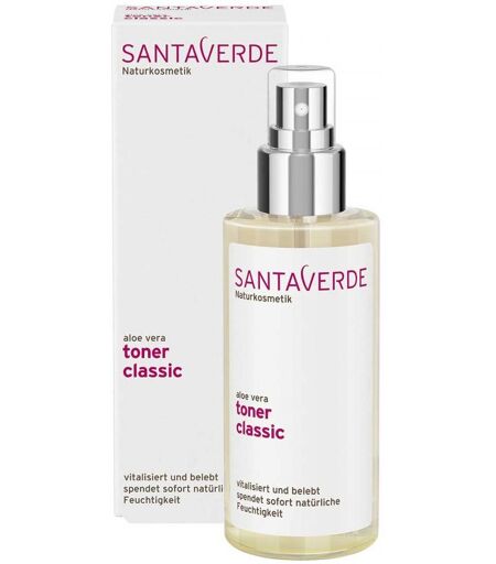 Anwendungsgebiet von Santaverde Aloe Vera Toner classic SpraySantaverde Aloe Vera Toner classic Spray wirkt vitalisierend, hydratisierend und intensiviert die Wirkung der nachfolgenden Pflege. Reiner Aloe Vera Saft spendet sofort natürliche Feuchtigkeit. Belebendes Nardenhydrolat regt den Zellstoffwechsel an und wirkt ausgleichend. Verleiht neue Energie und ein erfrischtes Hautgefühl. Geeignet für alle Hautbilder.