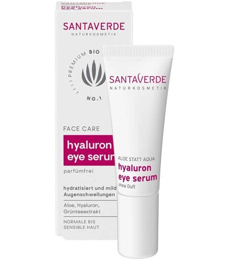 Wirkstoffe / Inhaltsstoffe / ZutatenInhaltsstoffe von Hyaluron Eye Serum : Aloe Vera Saft*, Rosenblütenhydrolat*, Pentylenglykol, Glycerin, Grünteeextrakt*, pflanzl. Betain, Weidenrindenextrakt, Hyaluronsäure, Meeresalgenextrakt, Xanthan, pflanzl. Anissäure, Natriumhydroxid.