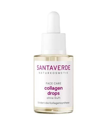 SANTAVERDE COLLAGEN DROPS Serum Das festigende Kollagen Serum wirkt hydratisierend und verbessert die Hauttextur. Reiner Aloe Vera Saft und Hyaluron spenden nachhaltig Feuchtigkeit. Pflanzliches Kollagen verringert den Feuchtigkeitsverlust der Haut und wirkt sich positiv auf die Hautdichte aus. Ein Extrakt aus Spirulina Algen fördert die Kollagensynthese und bewahrt die Spannkraft der Haut. Verleiht ein glattes, gefestigtes und strahlendes Hautbild. Geeignet für alle Hautbilder. Anwendung: Nach dem Reinigen und Tonisieren 2 bis 3 Tropfen mit Creme oder Öl vermischt oder als Solopflege auf Gesicht, Hals und Dekolleté auftragen und sanft einmassieren. Inhaltsstoffe: Aloe Vera Saft*, Zitronenverbene Hydrolat*, Weingeist*, pflanzl. Glycerin, Weidenrindenextrakt, pflanzl. Kollagen Aminosäuren, Spirulinaextrakt, Hyaluronsäure, Rettichwurzelferment, pflanzl. Levulinsäure, Meeresalgenextrakt, pflanzl. Natriumlevulinat, pflanzl. Natriumphytat, Glucose, Natriumhydroxid. *Aus kontrolliert biologischem Anbau ...