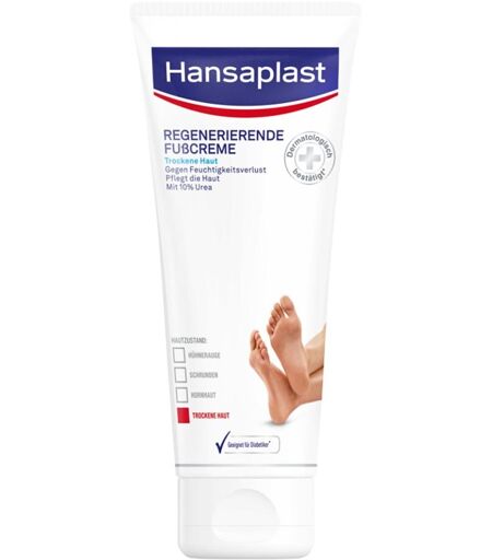 Anwendungsgebiet von Hansaplast Fußcreme 10% UreaTägliche Pflege für trockene Füße – intensive Feuchtigkeitsversorgung und SchutzDie Hansaplast Fußcreme 10% Urea wurde speziell entwickelt, um trockene und strapazierte Haut intensiv zu pflegen. Sie spendet sofort spürbare Feuchtigkeit, unterstützt die natürliche Schutzfunktion Ihrer Haut und beugt gleichzeitig der Entstehung von Hornhaut vor.Dank ihrer schnell einziehenden Textur lässt sich die Creme besonders angenehm anwenden – ohne klebrige Rückstände. Der enthaltene Wirkstoff Urea, der natürlicherweise in den oberen Hautschichten vorkommt, sorgt für eine nachhaltige Durchfeuchtung und ein geschmeidiges Hautgefühl. Selbst stark beanspruchte oder verhornte Füße werden wieder weich und glatt. Der dezente, frische Duft rundet das Pflegeerlebnis ab. Die Creme ist zudem für Diabetikerinnen und Diabetiker geeignet.Die Wirksamkeit wurde unter anderem an Personen mit sehr trockener, verhornter Haut – darunter auch Diabetiker – getestet. 100 % der Studienteilnehmerinnen mit Diabetes bestätigten die Eignung der Fußcreme für die tägliche Anwendung.Wirkstoffe / Inhaltsstoffe / ZutatenHansaplast Fußcreme 10% Urea enthält: Aqua, Glycerin, Urea, Cetearyl Alcohol, Sodium Lactate, Caprylic/Capric Triglyceride, Hydrogenated Coco-Glycerides, Octyldodecanol, Ethylhexyl Cocoate, CeraMicrocristallina, Paraffinum Liquidum, Dimethicone, Lactic Acid, Sorbitan Stearate, Sodium Cetearyl Sulfate, Carbomer, Aluminum Starch Octenylsuccinate, Phenoxyethanol, PEG-40 Castor Oil, Citronellol, Limonene, Linalool, Eugenol, Alpha-Isomethyl Ionone, PerfumeGegenanzeigenBei bekannter Überempfindlichkeit gegen einen der Inhaltsstoffe sollte dieses Produkt nicht angewendet werden.DosierungAnwendungsempfehlung von Hansaplast Fußcreme 10% Urea:Es wird empfohlen, eine speziell auf trockene Füße abgestimmte Pflege mindestens einmal, idealerweise jedoch zweimal täglich aufzutragen – am besten direkt nach dem Dusche ...