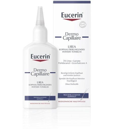 Produktinformation Trockene HautEucerin DermoCapillaire Kopfhautberuhigendes Urea Intensiv-Tonikum Das Eucerin Kopfhautberuhigende Intensiv-Tonikum pflegt trockene, juckende und irritierte Kopfhaut. Die milde Formel ist frei von Duftstoffen und eignet sich daher auch zur Hautpflege von empfindlicher Haut sowie bei Neurodermitis und Psoriasis. Die Kopfhautpflege enthält Licochalcone A, das beruhigend bei Hautirritationen wirkt und Mikroinflammationen mindert. Zudem sorgen die Inhaltsstoffe Urea und Lactat für intensive Versorgung mit Feuchtigkeit. Die Pflege für die Kopfhaut sorgt für eine deutliche Verbesserung des Hautzustandes und hilft das natürliche Gleichgewicht wiederherzustellen. Das Tonikum klebt nicht und muss nicht ausgespült werden. Besondere Eigenschaften: Beruhigendes Tonikum für trockene und juckende Kopfhaut Hautpflege für irritierte und schuppige Haut Mindert Mikro-Entzündungen und Juckreiz Auch bei empfindlicher Haut sowie Neurodermitis und Psoriasis geeignet Formel ohne Duftstoffe, für Kinder ab 3 Jahren Anwendung: Für Kinder ab 3 Jahren geeignet Zum Schutz vor Irritationen und weiterem Austrocknen Gegen trockene, juckende Kopfhaut Zusammensetzung: Aqua, Urea, Methylpropanediol, Sodium Lactate, Laureth-9, Glycyrrhiza Inflata Root Extract, Glycerin, Lactic Acid, Arginine HCL, Hydroxyethylcellulose, PEG-40 Hydrogenated Castor Oil, Cetrimonium Chloride, Phenoxyethanol.Das hier präsentierte Bildmaterial ist urheberrechtlich geschütztes Eigentum der Beiersdorf AG. Jegliche Verbreitung und Nutzung durch Dritte ist rechtlich untersagt.**Gutschein gültig bei Online-Bestellung ab dem genannten Mindestbestellwert (ausgenommen preisgebundene Bücher, verschreibungspflichtige Produkte, Artikel von Drittanbietern (Marktplatz Partnern) sowie bei einer Now!-Lieferung)) für die folgenden Produkte des Herstellers Beiersdorf AG Eucerin: 19169931, 16154610, 13929074, 14163929, 19729838, 15581586, 10832664, 11678159, 19358514, 19358514, 15294349, 15294332, 11678047, 17200737, 11678099, 14297073, 11678024, 11677993, 16502614, 11678001, 16236673, 11678142, 19116202, 15623422, 15210513, 8454781, 16510884, 8454775, 8454746, 12441459, 8454700, 19173499, 601656, 74458, 13889073, 13889096, 13889015, 19343346, 19343317, 13889021, 13889038, 8796286, 13889044, 13889268, 18099921, 13889133, 13889156, 13889179, 13889185, 13889191, 13889222, 13889239, 17929757, 13889251, 9508102, 9508094, 9508088, 9508065, 9508059, 9508071, 10779409, 14179451, 17882978, 13889216, 16807294. Voraussetzung ist die Angabe des Gutschein-Codes. Nur ein Gutschein pro Bestellung. Keine Kombination mit anderen Gutscheinen. Keine Barauszahlung. Gültig bis zum 01.12.2025. ...