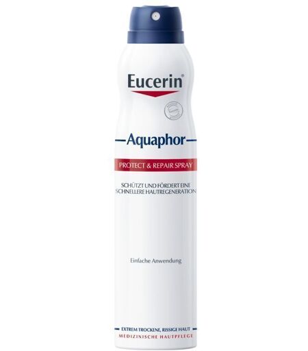 Eucerin Aquaphor Protect & Repair Spray Ist die Haut trocken, rissig oder irritiert, benötigt sie eine intensive Pflege, die die Hautregeneration unterstützt. Das Eucerin Aquaphor Protect & Repair Spray enthält die bewährte Aquaphor Formulierung, das die Ausbildung eines physiologischen Hautregenerationsmilieus fördert und so eine Art Schutzschild bildet, das die Barrierefunktion der Haut verbessert. Hierfür ist die Formel wasserdampfdurchlässig (semi-okklusiv), um einen schützenden Film auf der Haut zu bilden und einen möglichen Feuchtigkeitsstau zu verhindern. Ergänzend dazu enthält die Aquaphor Hautpflege Panthenol und Bisabolol, die beruhigend bei irritierter Haut wirken. Die Creme im innovativen Sprayformat hilft auch schwer erreichbare, größere Körperregionen, wie z.B. trockene Hautstellen am Rücken oder den Beinen zu versorgen. Das Spray enthält keine Duft- und Konservierungsstoffe und ist nicht komedogen. Die Wirksamkeit und Hautverträglichkeit im Zusammenhang mit dermatologischen Behandlungen in wissenschaftlichen Studien sind nachgewiesen. Die Salbe ist ideal als Hautpflege bei Xerosis und bei strapazierter, trockener Haut. Besondere Eigenschaften: Wirkt beruhigend auf rissige, irritierte und trockene Haut Trägt zur Verbesserung der Hautbarriere bei Innovatives Spray-Format für gleichmäßiges Sprühen, auch kopfüber Weitere Eigenschaften: Sanft Beruhigend Regenerierend Hohe Verträglichkeit Nicht aknegen Nicht komedogen Anwendung: Vor Gebrauch gut schütteln. Aus ca. 15 cm Entfernung gleichmäßig auf die betroffenen Hautregionen sprühen und sanft einmassieren. Den Sprühkopf nach Gebrauch säubern. Nicht auf offenen oder nässenden Wunden anwenden. Nicht direkt oder neben das Gesicht sprühen. Längeres Sprühen und direktes Einatmen vermeiden. Sprüht gleichmäßig, sogar kopfüber. Zusammensetzung: Butane, Paraffinum Liquidum, Cera Microcristallina, Paraffin, Lanolin Alcohol, Panthenol, Glycerin, Bisabolol.**Gutschein gültig bei Online-Bestellung ab dem genannten Mindestbestellwert (ausgenommen preisgebundene Bücher, verschreibungspflichtige Produkte, Artikel von Drittanbietern (Marktplatz Partnern) sowie bei einer Now!-Lieferung)) für die folgenden Produkte des Herstellers Beiersdorf AG Eucerin: 19169931, 16154610, 13929074, 14163929, 19729838, 15581586, 10832664, 11678159, 19358514, 19358514, 15294349, 15294332, 11678047, 17200737, 11678099, 14297073, 11678024, 11677993, 16502614, 11678001, 16236673, 11678142, 19116202, 15623422, 15210513, 8454781, 16510884, 8454775, 8454746, 12441459, 8454700, 19173499, 601656, 74458, 13889073, 13889096, 13889015, 19343346, 19343317, 13889021, 13889038, 8796286, 13889044, 13889268, 18099921, 13889133, 13889156, 13889179, 13889185, 13889191, 13889222, 13889239, 17929757, 13889251, 9508102, 9508094, 9508088, 9508065, 9508059, 9508071, 10779409, 14179451, 17882978, 13889216, 16807294. Voraussetzung ist die Angabe des Gutschein-Codes. Nur ein Gutschein pro Bestellung. Keine Kombination... ...