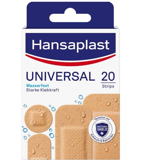 Anwendungsgebiet von Hansaplast Universal 20strHansaplast Universal Pflaster eignen sich für alle Arten von kleineren Wunden bzw. Verletzungen.Das Hansaplast Universal Pflaster besteht aus atmungsaktivem und wasserabweisendem Material. Die nicht verklebende Wundauflage schützt und polstert die Wunde und die extra starke Klebkraft sorgt dafür, dass das Pflaster nicht verrutscht. Hansaplast Universal 20str können in Ihrer Versandapotheke www.juvalis.de erworben werden. ...