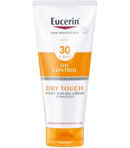 Anwendungsgebiet von Eucerin Sun Gel-Creme Oil Control Body LSF 30Die Eucerin Sun Gel-Creme Oil Control Body LSF 30 mit Lichtschutzfaktor 30 ist ein wasserfester und schweißresistenter Sonnenschutz, der den ganzen Körper zuverlässig vor sonnenbedingten Hautschäden schützt.