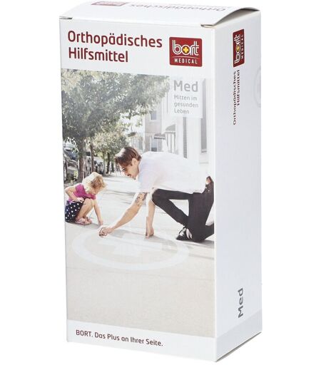 BORT Daumen-Hand-BandageProduktmerkmale: Komprimierende Handgelenkbandage mit Daumeneinschluss zur Stützung des Daumengrund- und Daumensattelgelenks und Stabilisierung des Handgelenks Schlankes Stabilisierungselement aus Kunststoff, anatomisch vorgeformt Anatomisch formgestrickt Kompressions-Klasse II Farben beige, schwarz Das Med-Plus Stabilo®-Band zur zusätzlichen Stabilisierung des Handgelenks Besonders leichte und schlanke Bauweise für guten Tragekomfort Indikationen Chronische posttraumatische oder postoperative Reizzustände im Bereich des Daumensattelgelenks z. B. nach Frakturen im Spätstadium Arthritis ulnare und radiale Bandläsionen Größen Umfang Handgelenk small bis 15 cm medium 15 - 17 cm large 17 - 19 cm x-large 19 - 21 cm rechts und links gleich ...