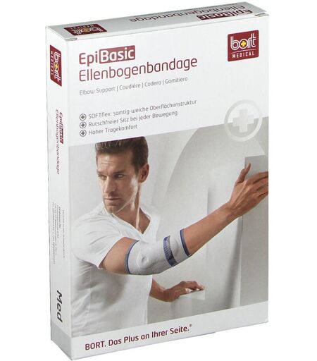 BORT Epi Basic Komprimierende Ellenbogenbandage SOFTflex-Gestrick für mehr Elastizität, Stabilität und hohen Tragekomfort Zwei strukturierte Silikonpelotten zur intermittierenden Massage Länge: 20 cm Speziell elastische Beugezone, schont die Ellenbeuge auch bei langer Tragedauer Umfang Unterarm (5 cm unter Ellenbogengelenk) Größen 20 - 22 cm xGr. XS 22 - 24 cm Gr. XS 24 - 26 cm Gr. S 26 - 28 cm Gr. M 28 - 30 cm Gr. L 30 - 32 cm Gr. XL 32 - 34 cm Gr. XXL ...