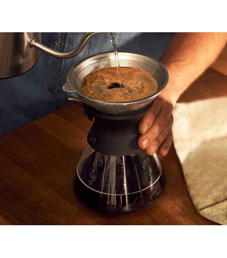 BEEM Pour Over, 0,75 l Farbe: Kanne: transparent Permanentfilter: silberfarben Silikonmanschette: schwarz Material: Kanne: Borosilikatglas Permanentfilter: Edelstahl Manschette: Silikon Füllmenge: ca. 750 ml (für etwa 6 Tassen Kaffee) 0,75 l Glaskaraffe der Marke BEEM mit Silikonmanschette & Permanentfilter aus hochwertigem EdelstahlKein Papierfilter notwendigHitzebeständiges Borosilikatglas & wärmeisolierende SilikonmanschetteDirektes Brühen und Servieren in der Karaffe ...