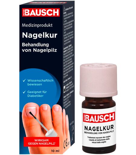 Nagelkur zur Behandlung von Nagelpilz. Wissenschaftlich bewiesenGeeignet für Diabetiker Anwendung: Tragen Sie das Produkt zwei bis dreimal täglich mit dem Pinsel auf den betroffenen Nagel auf. Anwendung nur für Erwachsene ab 18 Jahre. Wie wirkt die Peter Bausch Nagelkur? Die einzigartige Rezeptur wirkt effektiv gegen Pilze, die Nagelpilz verursachen. Die Wirkstoff-Kombination ISK1320 bildet eine Schutz-Schicht mit leicht saurem Milieu auf dem Nagel, welches für das Wachstum und die Ausbreitung von Pilzen ungünstig ist. Für Diabetiker geeignet. ...